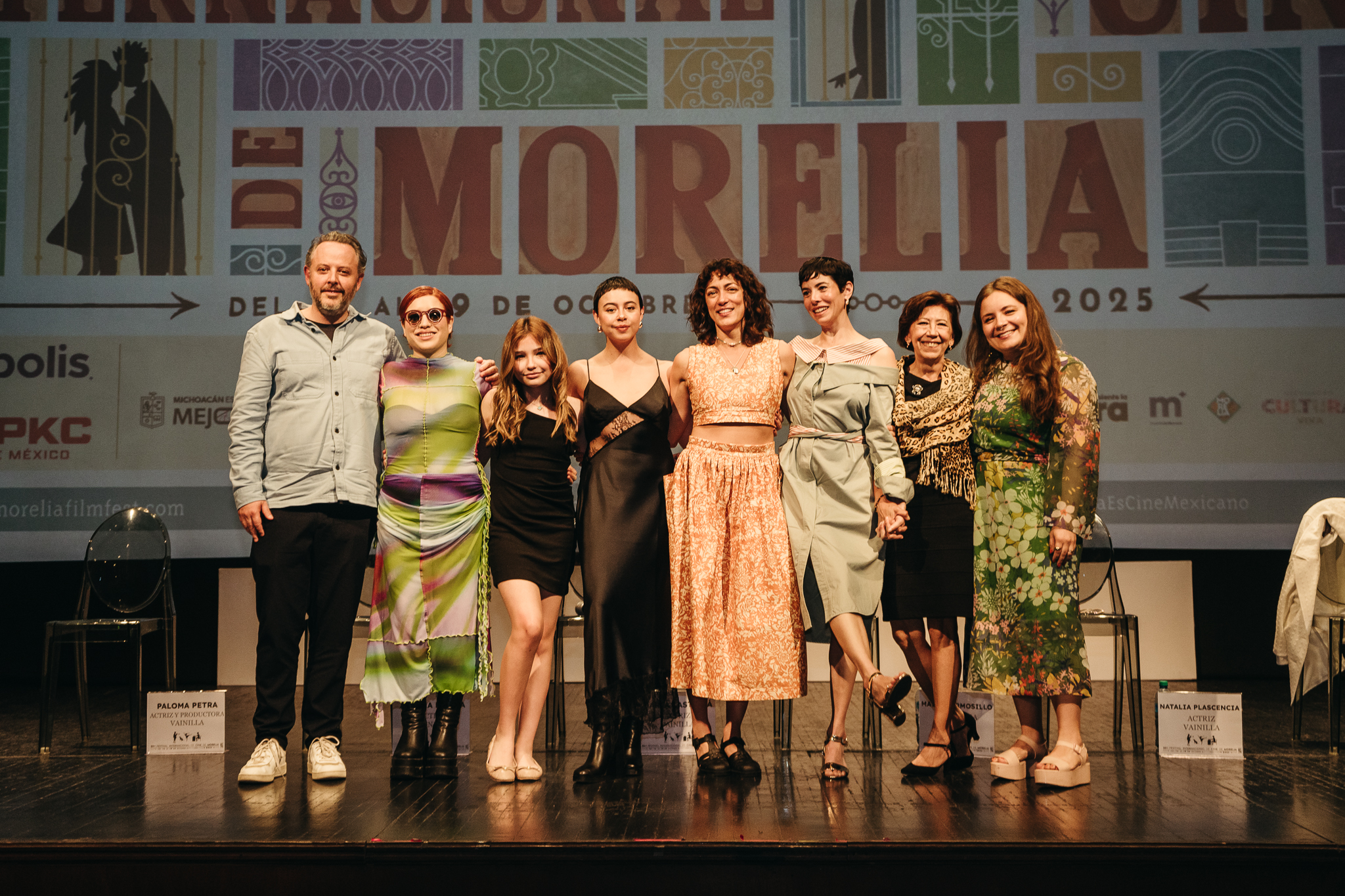 14 · 10 · 25 “Fue una oportunidad de revisitar a mi familia”: Mayra Hermosillo estrena su ópera prima, VAINILLA, en el 23er FICM Compartir en twitter Compartir en facebook Compartir con correo Copiar al portapapeles Alan Rodríguez Previo al estreno de Vainilla en el 23er Festival Internacional de Cine de Morelia (FICM), se llevó a cabo la conferencia de prensa de la película con la presencia de su directora Mayra Hermosillo, quien estuvo acompañada por Andrea Porras Madero, productora; Stacy Perskie, productor; y por las actrices Aurora Dávila, María Castella, Paloma Petra, Natalia Plascencia y Rosy Rojas.Vainilla, primer largometraje de la también actriz, formó parte de la edición número 10 de Impulso Morelia en 2024 y fue proyectada en las Giornate degli Autore, sección paralela del Festival de Cine de Venecia este año.Mayra Hermosillo es originaria de Torreón y ha trabajado como actriz de teatro, cine y televisión. En esta ocasión habló sobre cómo fue su incursión como directora y que le llevó a crear este proyecto: “Creo que lo que me ha funcionado en la vida es no pensarlo tanto, porque las cosas que he pensado mucho nunca las hago, lo que me ha ayudado a saltar es saber que no lo haré sola”.La película narra la historia de una familia a finales de los años 80, compuesta por siete mujeres de diferentes generaciones e ideologías que luchan por salvar la casa en la que viven y que están a punto de perder debido a una deuda pendiente. La historia es abordada a través de los ojos de la más joven, mientras emprende un viaje de autodescubrimiento que impacta al resto de la familia.“Fue una oportunidad de revisitar a mi familia, de no quedarme con la idea que tenía de cada una de ellas […]. Fue así que arranque este viaje junto con mi mamá, porque yo creo que mi abuela, mi bisabuela, mi tía y mi nana están muy divertidas en el cielo viendo todo el desmadre de esta película”, compartió la directora.La actriz Paloma Petra, también productora de la película, habló sobre su experiencia interpretando el personaje de Georgina y acerca de la importancia de que sea una historia desarrollada en el norte de México: “Además de representar a personajes femeninos tridimensionales en el cine, una de las cosas que a mí más me mueve es que sean personajes de otras partes del país. Me da mucho gusto que con Vainilla podamos generar estas conversaciones desde distintos lugares”.El elenco y parte del equipo de la película destacaron el proceso de filmación y el trabajo de Mayra en su primera experiencia como directora: “La importancia de ser dirigidas por una actriz es inspirador porque tiene una mirada muy humana”, dijo María Castella.Antes de finalizar la conferencia de prensa, la directora compartió una anécdota de cuando presentó su película en Venecia y tuvo la oportunidad de conversar con Guillermo del Toro, a quien admira y considera su “papá creativo”.