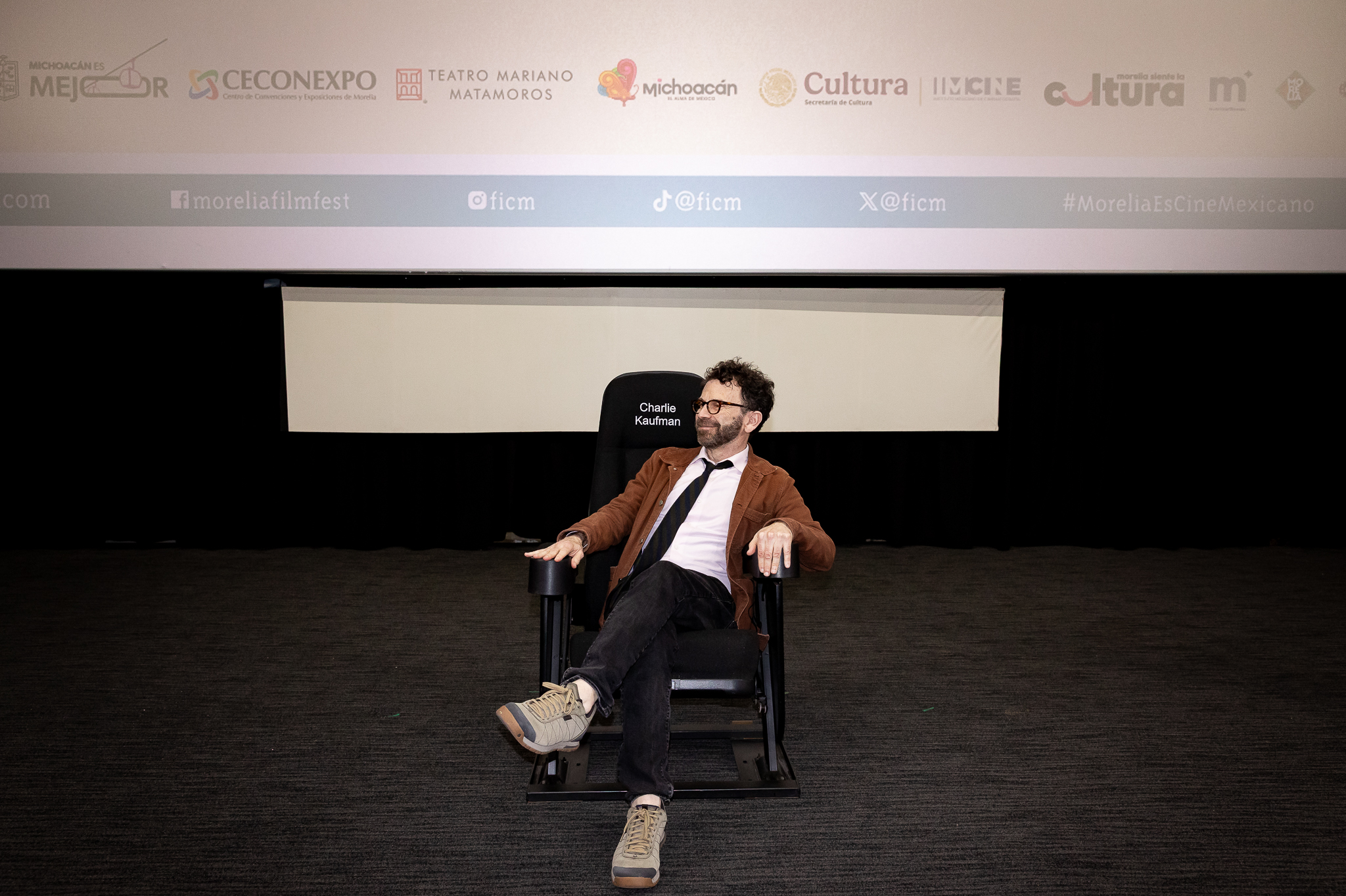 13 · 10 · 25 “Como artista, creo que ya es suficiente”: Charlie Kaufman presenta HOW TO SHOOT A GHOST en el 23er FICM Compartir en twitter Compartir en facebook Compartir con correo Copiar al portapapeles Gustavo R. Gallardo El guionista y director de cine Charlie Kaufman presentó su cortometraje How to Shoot a Ghost en el marco de la edición 23 del Festival Internacional de Cine de Morelia (FICM), develó una butaca con su nombre y conversó con la guionista Eva H.D. en una charla moderada por Fernanda Solórzano. “Durante la pandemia, Eva grabó un poema suyo junto a una amiga y me lo mandó, entonces pensé que podría funcionar (…) Sentí que tenía una responsabilidad enorme para no echarlo a perder”, explicó Kaufman. En How to Shoot a Ghost, dos jóvenes (Jessie Buckley y Josef Akiki) recientemente fallecidos se encuentran en las calles de Atenas, entre el vibrante paisaje urbano y los fantasmas de la historia. Uno es traductor, ella es fotógrafa; en vida eran outsiders, y en la muerte lidian con los vestigios de sus deseos y errores. Juntos recorren la ciudad, hallando consuelo en la difícil belleza de la existencia y sus consecuencias. Eva H.D., quien cita a Tim Morrison, dice que la poesía, una parte importante en el cortometraje, no es más que dolor: “Es algo que todos podemos hacer para buscar este dolor, que está ahí; Charlie lo hace en sus películas”. En sus filmes, los personajes de Kaufman lidian con la soledad, la idea de la muerte y el desamor, se trata de una constante, y en este cortometraje que no fue escrito por él, parecen sólo tener un aire al guionista creador de Eterno resplandor de una mente sin recuerdos, quien sostiene que su pretensión fue “saber lo que ella quería, cuál era su intención”. “[Los personajes] son esperanzadores porque están muertos”, bromea Eva H.D., y añade: “Los personajes se ven liberados porque no están escritos por él”. “Como estamos conscientes de la muerte inventamos la esperanza”, replica Kaufman, y en esa esperanza camina la idea de que los fantasmas se sostienen de las cosas que les gustaba hacer cuando estaban. “Piensa en lo que vas a extrañar cuando estés muerto”, dice Eva H.D. Además, dice que no cree que la vida sea suficiente, que no piensa en ello en el día a día, qué se va a llevar, qué dejará: “Sabemos que no estamos hechos para siempre, pero aun así hacemos lo que hacemos”. Para Kaufman, quien dice que ha tenido experiencias que le hacen pensar que los fantasmas existen, responde que sí ha pensado en la suficiencia de la vida: “Lo pienso en este momento: Como artista, creo que ya es suficiente”.