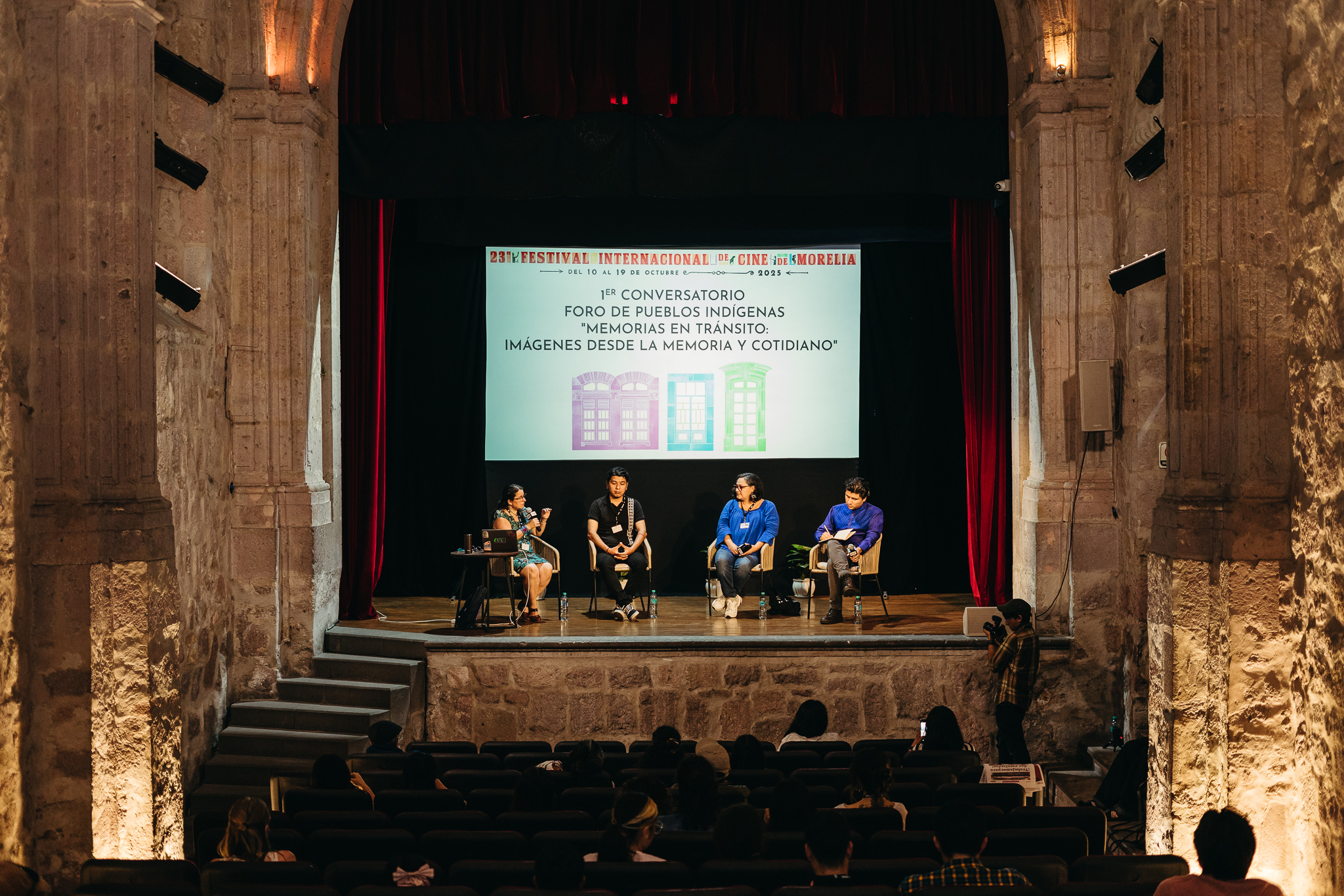 12 · 10 · 25 Se llevó a cabo el primer conversatorio del Foro de los Pueblos Indígenas: “Memorias en tránsito desde la memoria y cotidiano” Compartir en twitter Compartir en facebook Compartir con correo Copiar al portapapeles Alan Rodríguez El 23er Festival Internacional de Cine de Morelia (FICM) abrió paso al primer conversatorio del Foro de los Pueblos Indígenas: Memorias en tránsito desde la memoria y cotidiano, en el cual participaron los realizadores Balam Toscano, Edmundo U. Galicia, y la cineasta Martha Uc. En una plática moderada por Amalia Córdova en el Teatro Rubén Romero del Centro Histórico de Morelia, los participantes del conversatorio hablaron sobre cada uno de sus proyectos y de las diferentes experiencias que les dejaron. Balam Toscano es un cineasta afrodescendiente de Oaxaca, su cortometraje Amare es una producción del Centro de Capacitación Cinematográfica (CCC) que cuenta la historia de una mujer afrodescendiente que se ve obligada a emigrar a Estados Unidos para apoyar a su familia. Toscano habló sobre esta incursión en la ficción que parte de querer hablar de su familia y de sus historias de migraciones. Edmundo U. Galicia es un artista sonoro y promotor cultural que participa en el fortalecimiento de la identidad cultural de su lugar de origen. Su cortometraje La piel de nuestra memoria explora justamente los conceptos de identidad y espiritualidad a través de la cultura y lengua chinanteca: “Es un compromiso con la gente de mi región […], la lengua provee diferentes formas de abordar el mundo”. Martha Uc es una cineasta yucateca que inició como asistente de edición, su cortometraje Cremita de coco es un retrato de cómo la ternura transforma lo cotidiano. “El cortometraje es de las formas más bonitas de hacer cine, contar historias en tan poco tiempo […]. Cremita de coco es para la gente de mi comunidad, me gustaría que el corto encuentre más espacios, me interesa hacerlo a nivel peninsular”, agregó. El Foro de los Pueblos Indígenas ha buscado desde su creación convertirse en un espacio de acercamiento a las narrativas de los y las cineastas de pueblos originarios promoviendo su labor cinematográfica y creando espacios de formación. Amare, La piel de nuestra memoria y Cremita de coco forman parte de la Sección de Cortometraje Mexicano de la presente edición del festival.